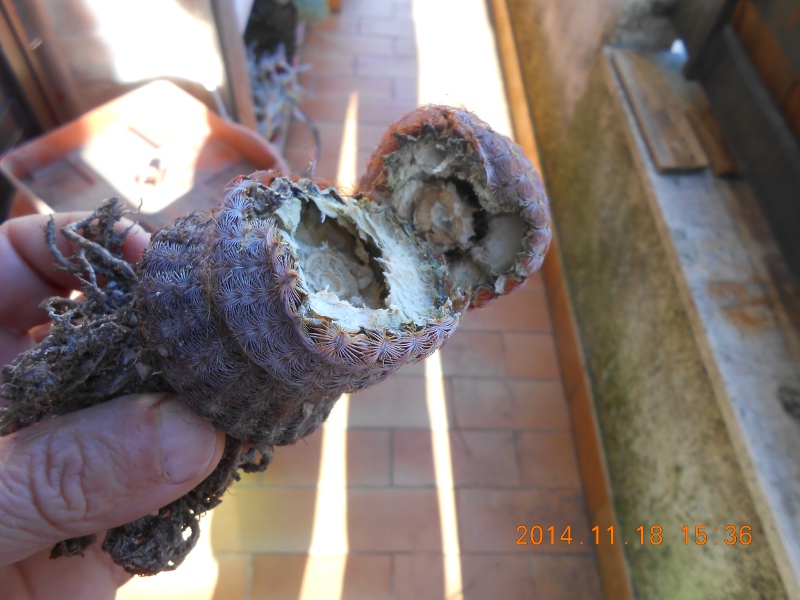 Io ho appena buttato un E. rigidissimus rubispinus che avevo da molti anni, era leggermente afflosciato su un lato, come i tuoi. Quando ho deciso di svasarlo ho avuto la brutta sorpresa; prendendolo in mano ho scoperto che era morbido...l'ho tagliato e all'interno era completamente vuoto. Mi dispiace, ma i tuoi mi sembrano nelle stesse condizioni.