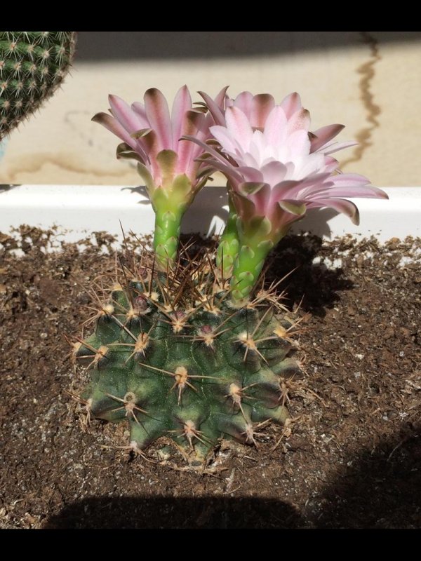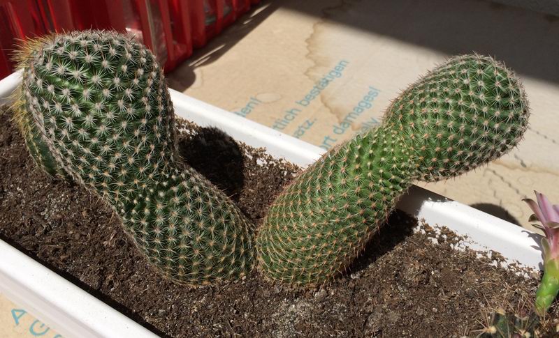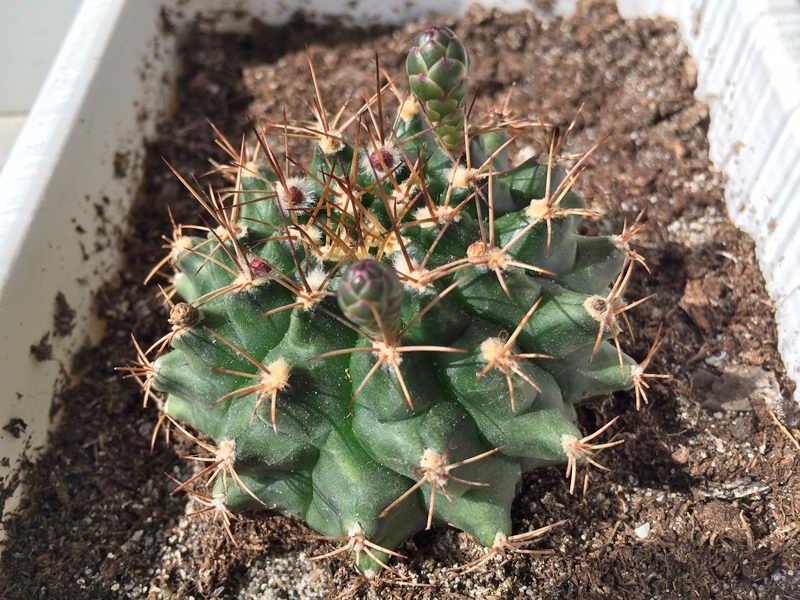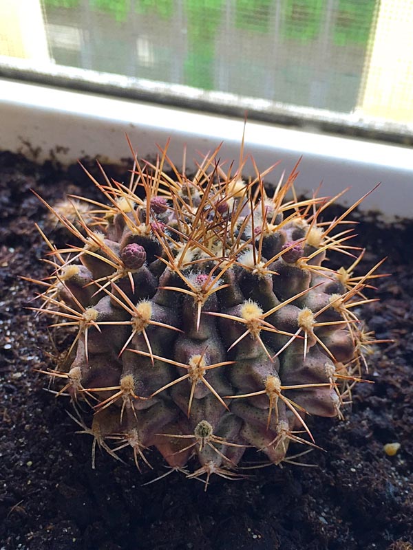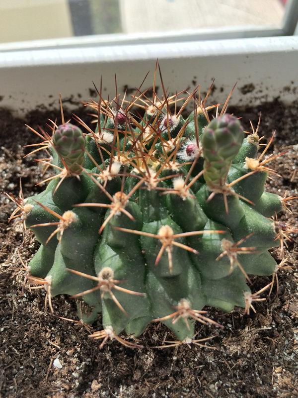 La Gymnocalycium anisitsii come l'anno scorso ha diversi boccioli e spero mi dia le stesse soddisfazioni passate. Quest'anno ho notato che si è particolarmente "arrossata" si vede bene dalla foto, soprattutto se confrontata con quelle scorse. Cosa può essere?