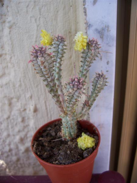11- euphorbia mammillaris variegata ( i fiori sono finti, vero? se puoi, staccali!)
