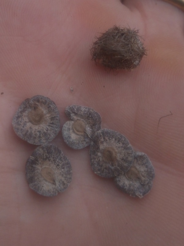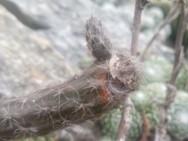 Anche quest'anno lo pterocactus è fiorito: ormai il più grande fa diversi fiori ogni anno, ma fino ad ora nessuno aveva allegato. Oggi invece dando una sistemata ho visto che un vecchio residuo di fiore si stava sollevando e al di sotto si intravedevano i semi.