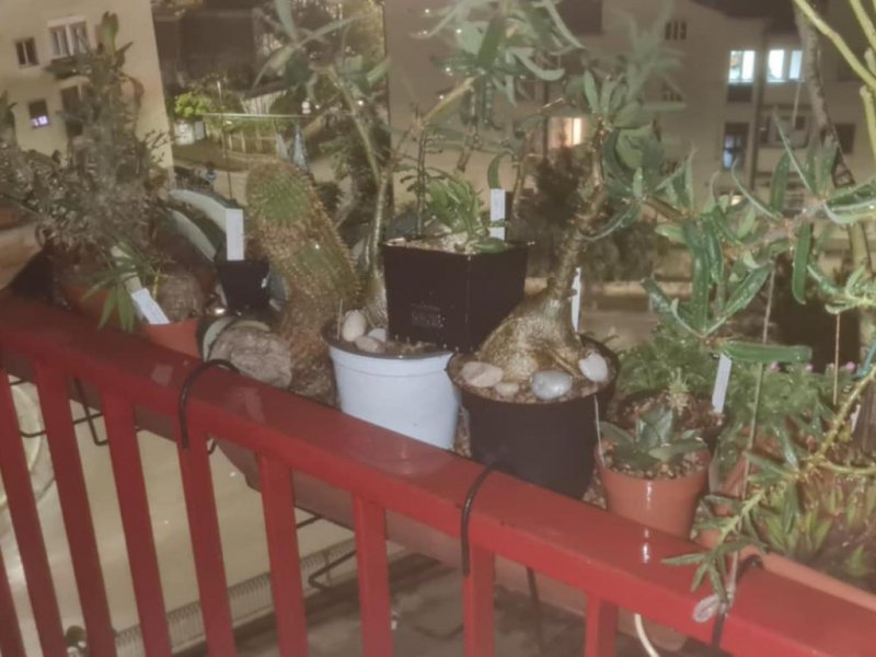 I pachy africani non mostrano alcun segno di sofferenza ancora, quelii del Madagascar si, cominciano, chi totalmente chi con foglie in passione. il mio brevicaule non mostra ancora segni di stanchezza, è di origini tedesche abituato al freddo, in questo momento stanno tutti all'acqua piovana da due gg. tranne gli horombense che hanno perso subito le foglie perchè svasati ad agosto scorso per cui le radici non hanno preso possesso della terra, a mio parere.