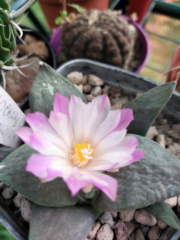 Comprato massimo 2 settimane fa da una vivaista che lo ha portato con sé da una vacanza in Salento... Ariocarpus retusus v. frumdosus, ha fiorito del tutto inaspettatamente