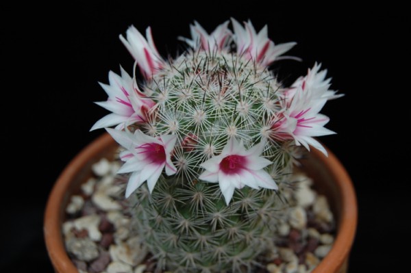 Condivido quanto affermato da Mauri che le certezze si possono solo avere quando la pianta fiorisce e fruttifica anche se continuo a vederla come Mammillaria sheldonii. Secondo me quel colore verdastro è un effetto fotografico.