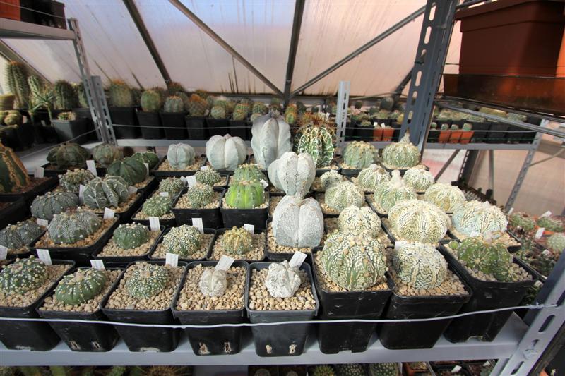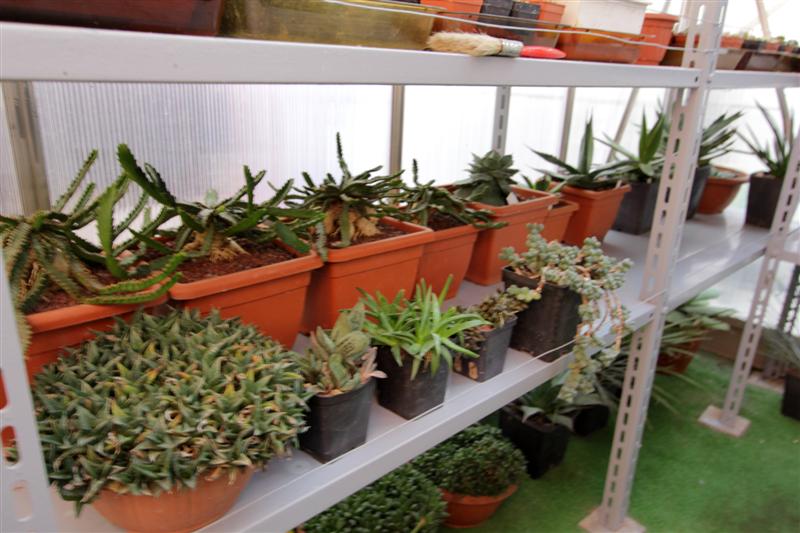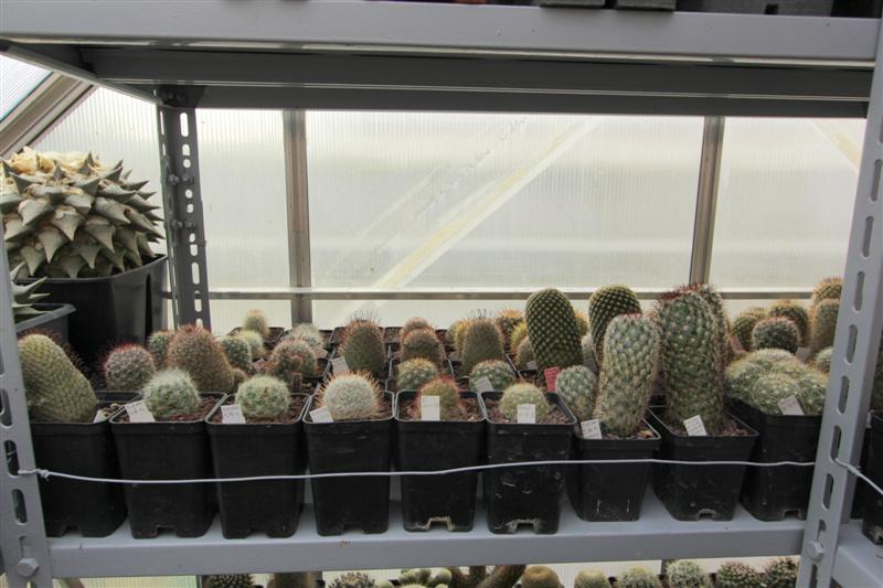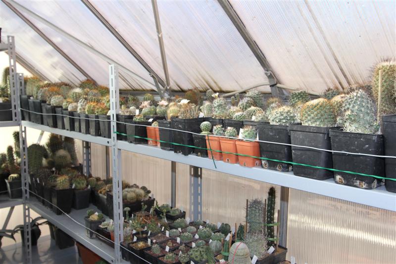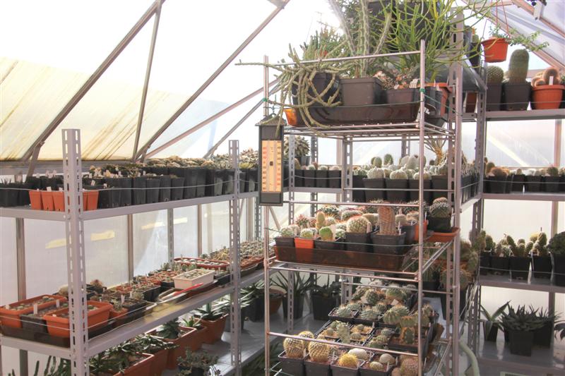 Ovviamente la disposizione sugli scaffali non è a caso, dato che il caldo tende a salire verso l'alto: in alto le piante meno rsistenti al freddo e via via scendendo quelle più resistenti.