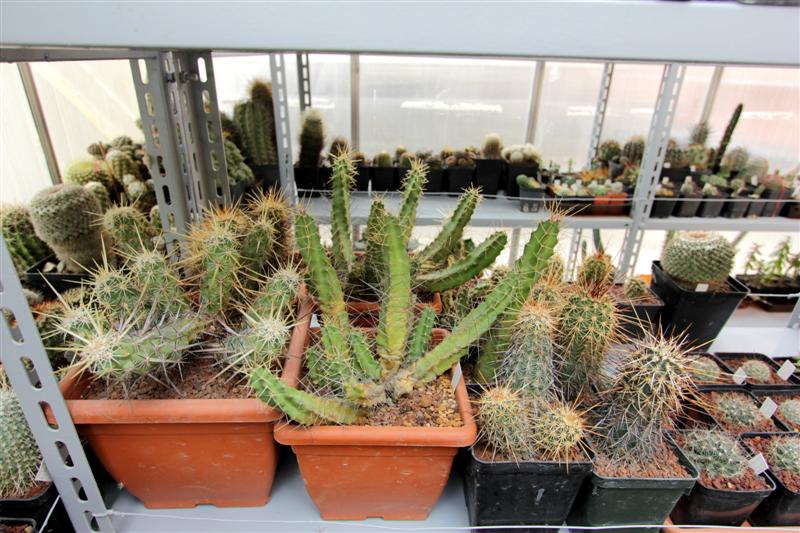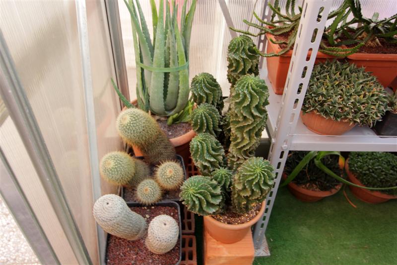 Serra calda, Mammillaria haageana, M. spinosissima, Euphorbia horrida Aloe vera