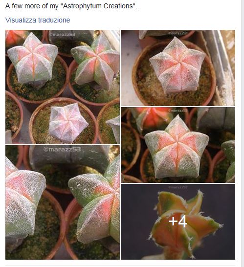 Naturalmente ci sono anche Astrophytum variegati , hanno una parte colorata generalmente rossa o gialla, ma non mi sembra il caso di quelli visti in vendita qui sopra.