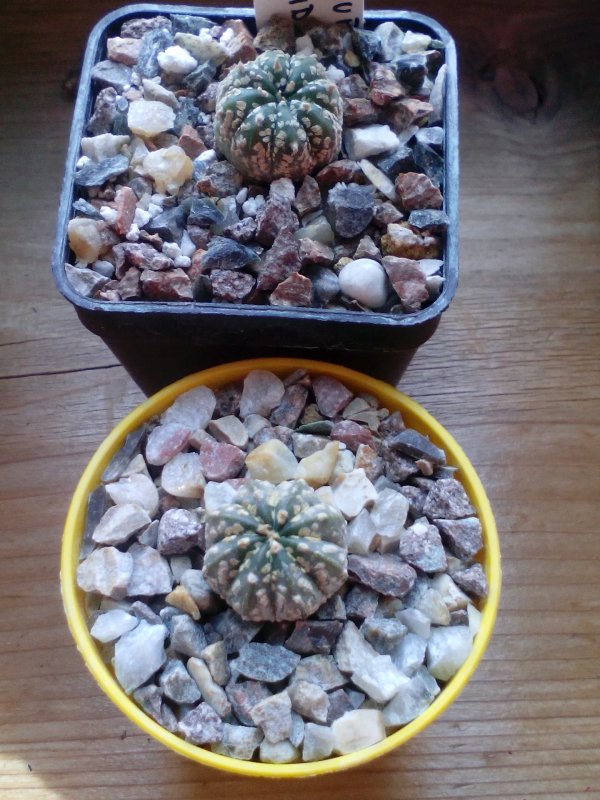 Premetto che non sono bravo a manovrare i telefoni in genere, comunque ci provo. Ho comprato in estate le prime due piante per astrophytum superkabuto x onzuka hybrids reds, vi assicuro che appena comprati erano rossi ora tutto sembrano meno che rossi. Incece nella seconda foto gli ho comprati per astrophytum myriostigma red e come si vede uno è ancora sul rosso l'altro mi sembra già sul verde. Dovrei sperare che con il bel tempo ritornino rossini