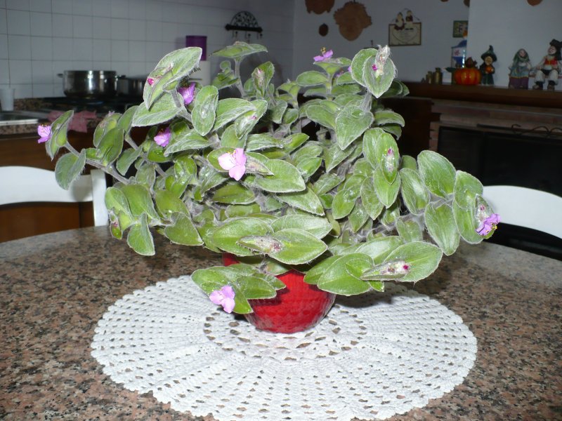 ecco la mia Tradescantia sillamontana in mostra nella mia cucina.