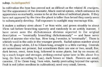 Mammillaria crucigera ha quattro spinotte centrali a croce, mentre huitzilopochtli ne ha una rivolta all'insù….