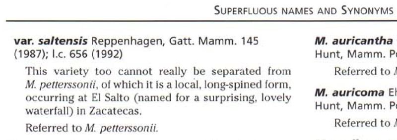 Vorrei dire a CMR che in Mammillaria sinonimo significa "riferito a..." come ricorda correttamente Eduardo.