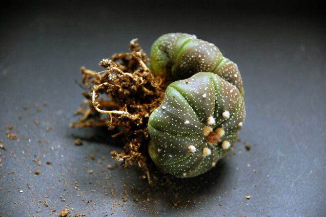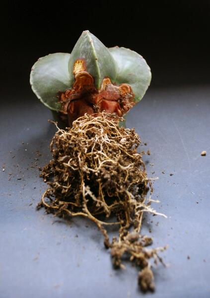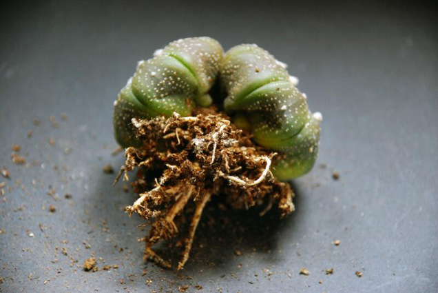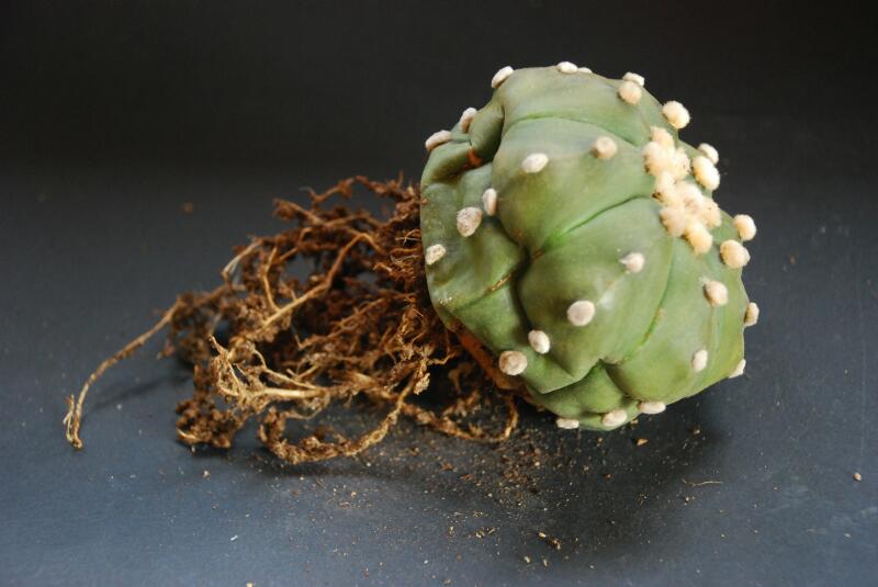 Nella settimana di rinvasi quello che trovammo svasando non era certamente esaltante: la pianta non aveva più radici e aveva consumato molte delle sue risorse affrontando il riposo in grave deficit.