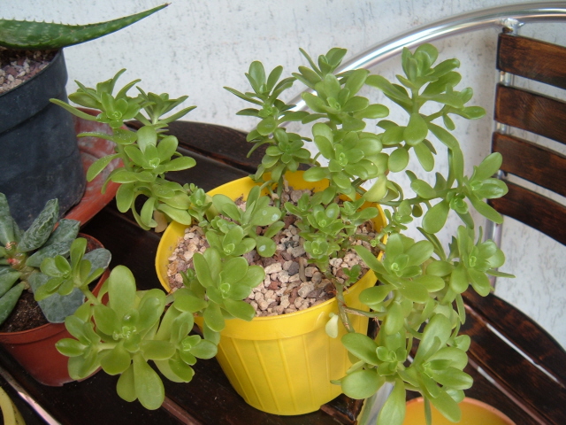 Anche la prima mi sembra una Crassula, ma così rosata non ne conosco la specie, mentre l'ultima è una Crassula perforata (non perfoliata)