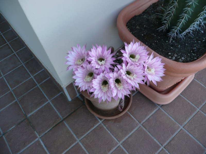 Per la mia esperienza le piante hanno bisogno del freddo per fiorire, le Echinopsis le tengo sempre fuori riparate dall'acqua, anche questo inverne che ha fatto la neve e questo è il risultato.
