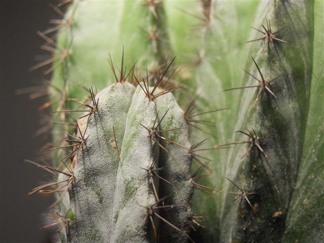 3. Cylindropuntia fulgida crestata, gli articoli normali fanno parte della stessa pianta, che col passare del tempo cerca di "correggere" la crestatura