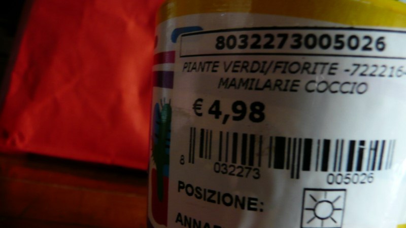A proposito di etichette vedo anche un bel sole pieno per mammillarie. Io al tuo gymno un po meno sole lo consiglierei sicuramente. Comunque vedo che e un vaso di supporto per quello di plastica dentro. I soliti scambi agli occhi di chi non sa.