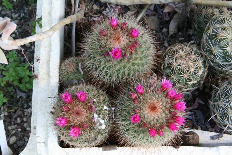 La 1 è una Mammillaria spinosissima, ma non è il cultivar "un pico", perché si vede bene che ha molte spine per ogni areola. La "un pico" ne ha, per definizione, solo una (talvolta due o talvolta nulla, ma tendenzialmente una sola).
