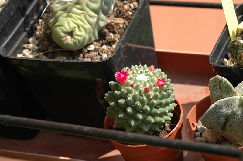 sicuramente una mammillaria, ma di più non so.... altri sapranno aiutarti meglio ciaooooo ps: scusa la curiosità ma la pianta che s'intravede a sinistra in alto????