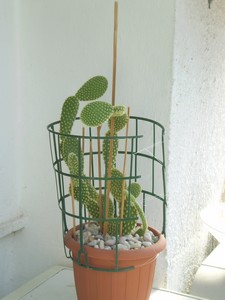 Ciao, l'opuntia in foto cresce molto bene e sembra non aver problemi se non quello che non riesce a tenersi in piedi. La annaffio ogni due settimane e al momento dell'annaffiatura è completamente abbattuta da una parte, il giorno dopo l'annaffiatura si rialza ma due giorni dopo si abbatte dalla parte opposta. Purtroppo per questo motivo si sono già staccate molte parti e ho provato a metterle dei supporti.