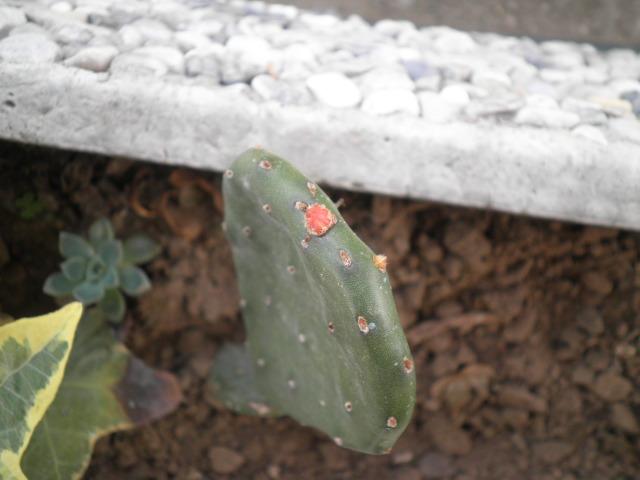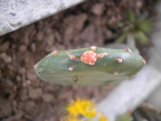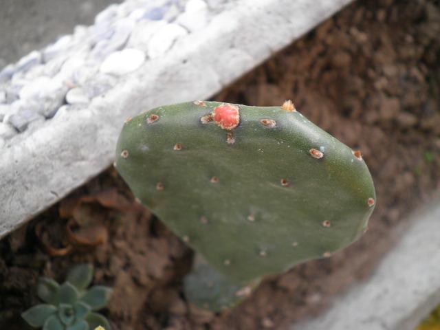 L'anno scorso mi hanno regalato 2 palette di questa Opuntia, che ha resistito all'aperto a questo gelido inverno. Di che tipo è? Alla sommità di entrambe le palette nuove è apparsa una "cosa" rossastra, è un bocciolo di fiore? Grazie!