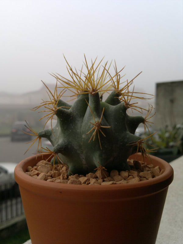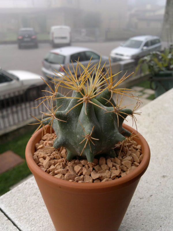 questo sul vaso originale aveva scritto Echinocactus solo che non riesco a capire né se sia giusta il genere, né quale specie potrebbe essere se è veramente un Echinocactus...