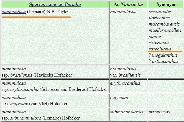 Mi chiedo se Notocactus roseoluteus si lo stesso che dire Parodia mammulosa.