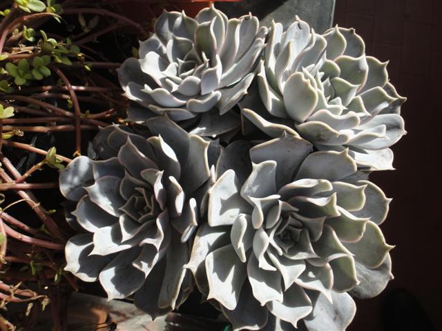 Ciao Paola! Sedum burrito, Pachyphytum viride (probabilmente) e Echeveria lilacina.