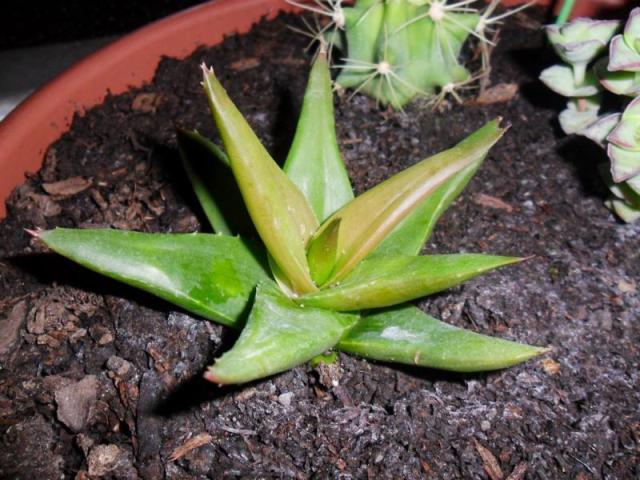 La 6 della prima serie ce l'ho uguale, comprata cartellinata in un garden non specializzato Aloe mitriformis v austera. Non ne sono mai stata convinta, penso più a un ibrido tra Aloe e Haworthia