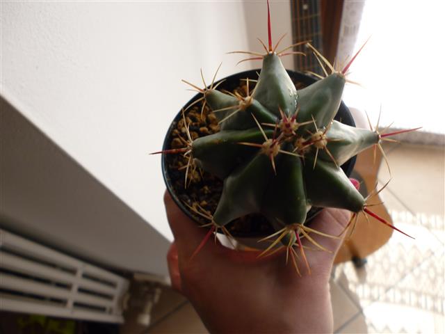 Mia sorella ha acquistato questa bella pianta al supemercato e chiede aiuto per l'identificazione (azzardo ferocactus?) Grazie a tutti!   1)   2)   3)