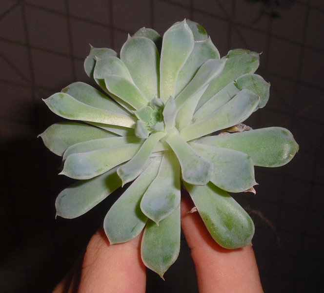 L'echeveria sembra una runyonii, questa è quella normale, spesso si trova la versione mostruosa 'Topsy Turvy'.