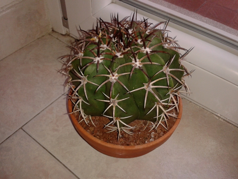 pensavo più a un Ferocactus che ad un Melocactus perchè accanto a questo c'era un esemplare apparentemente della stessa specie molto più grosso (circa 30cm di diametro) e non aveva nessun accenno alla tipica infiorescenza dei melocactus!