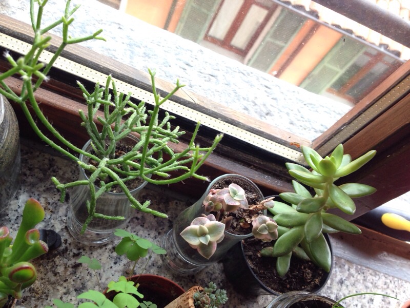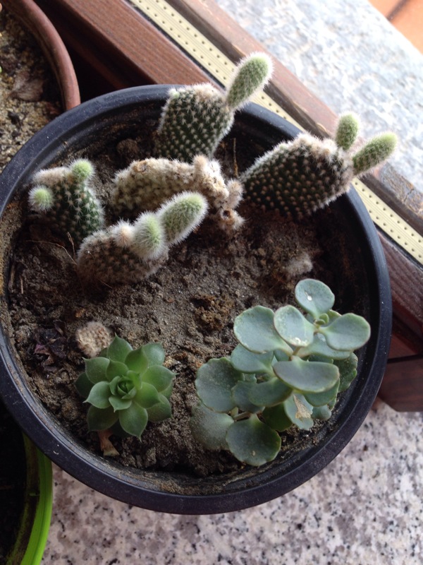 Segue una scarrellata di foto, che includono buona parte di quel che ho in questo momento. Tutte acquistate da vivai, al mercato, talee rubate ad amici o simili. Non ho la più pallida idea di quale sia cosa, se non a grandi linee la famiglia a cui appartiene.