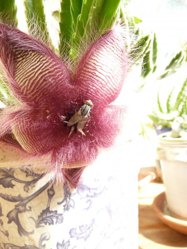 Ciao, Giulia, anche per me la prima è una Stapelia gigantea, la grandiflora ha il fiore più piccolo (si fa per dire, perché è intorno ai 20 cm) e di color rosa-viola.