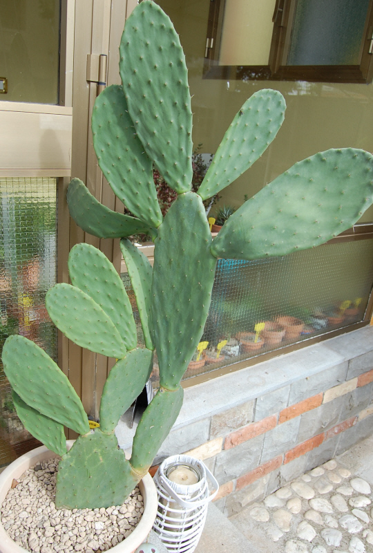 ancora opuntia... ha pochissime spine e anche pochi glochidi. Cresce velocemente, da una unica pala, in due anni è diventata cosi.
