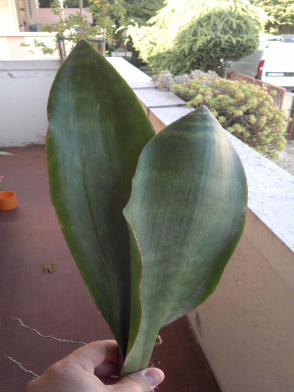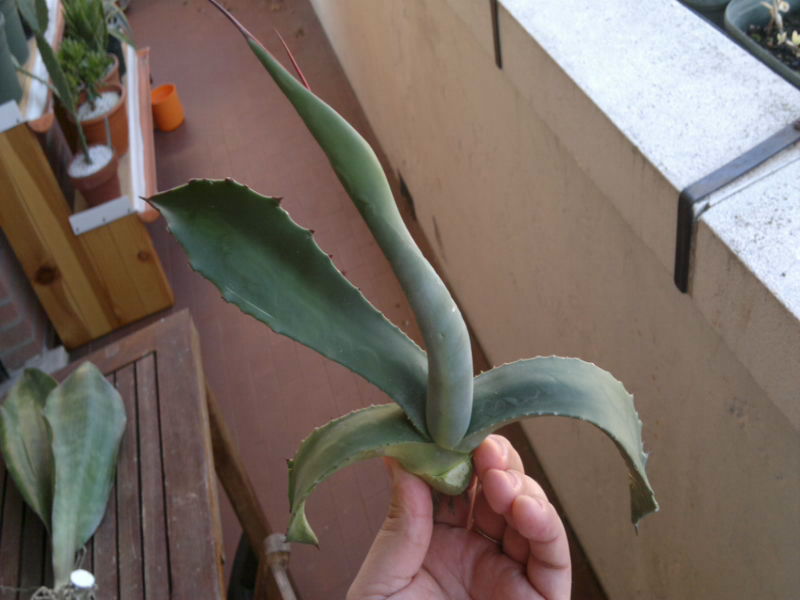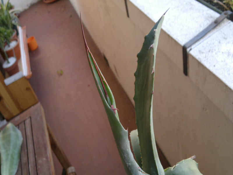 Non penso sia Agave americana xkè c'è l'ho tra le mie e le foglie sono diverse....l'americana ha le foglie carnose, liscie al tatto e di colore grigio/verde tendente al blu, mentre quella che mi hanno portato ha le foglie molto più carnose, ruvide su entrambe le facce e di color verde bottiglia (quasi come lo sfondo del nostro forum 😂) e in più ha quelle spine in punta molto rosse....