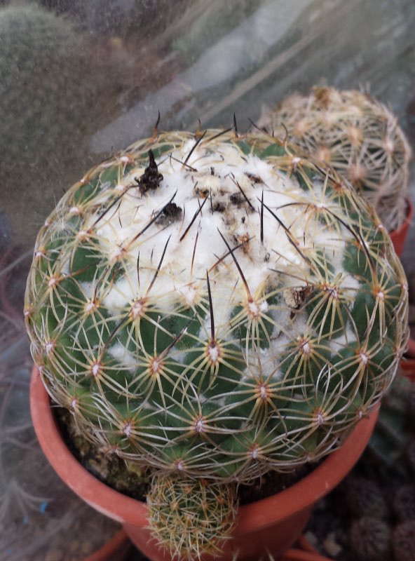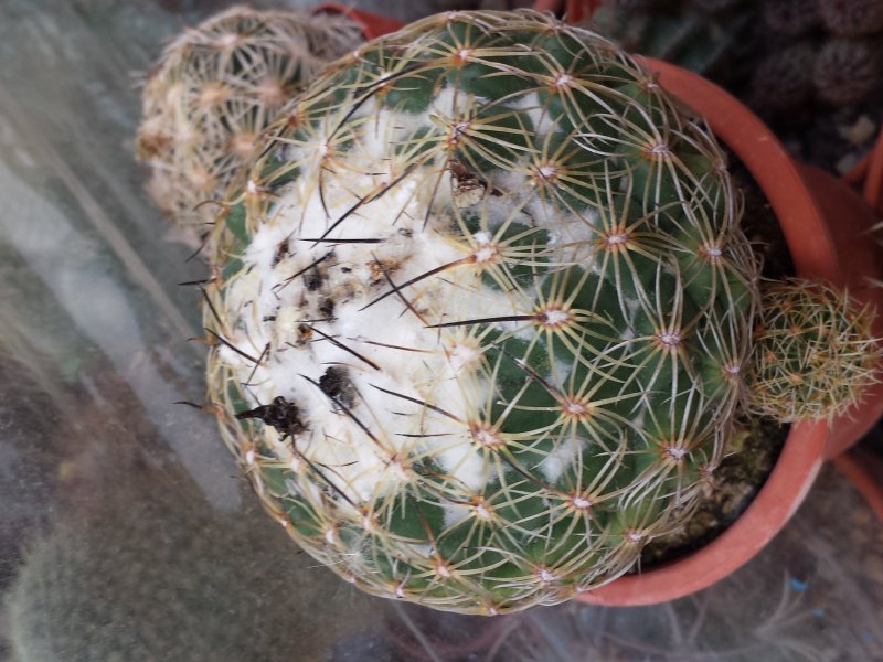 Per chiarezza: da molti si tende ad accorpare C. radians e C. cornifera considerando la radians come sinonimo di cornifera, infatti troverete molti siti in cui ci sarà la dicitura come ho posto sopra Coryphantha cornifera / radians mentre per altri si tende a distinguere le due varietà ossia si intende Coryphantha radians quando non c'è la spina centrale, in questo caso la pianta di Donatella dovrebbe essere C. radians Sorriso
