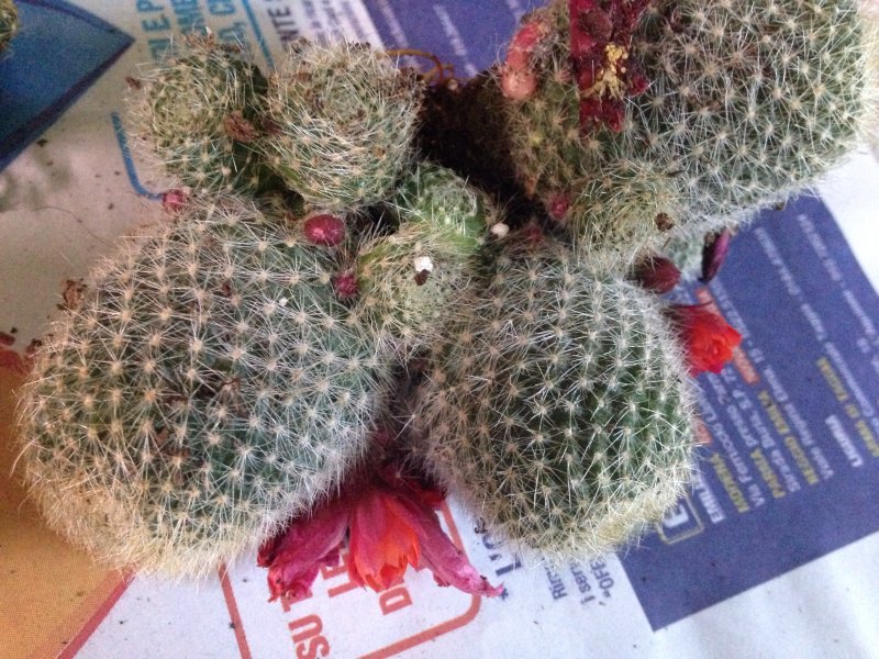 La 7 sta aprendo i fiori ora è direi che potrebbe essere una rebutia hoffmannii visto che i fiori sono rosso violacei fuori e arancioni dentro