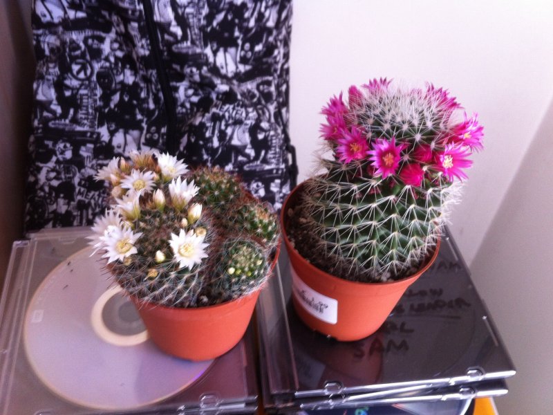 Aggiungo le foto di due mammilarie, per fortuna queste sono in salute!!! Magari qualcuno sa dirmi la specie, cosi quando hanno finito di fiorire le trapianto con un bel cartellino!