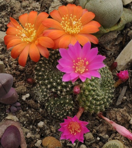 questo piccolo cactus che vive nella mia serra mi ha regalato una bellissima fioritura ... di due colori. Io ero veramente convinta fosse la stessa pianta, una rebutia forse