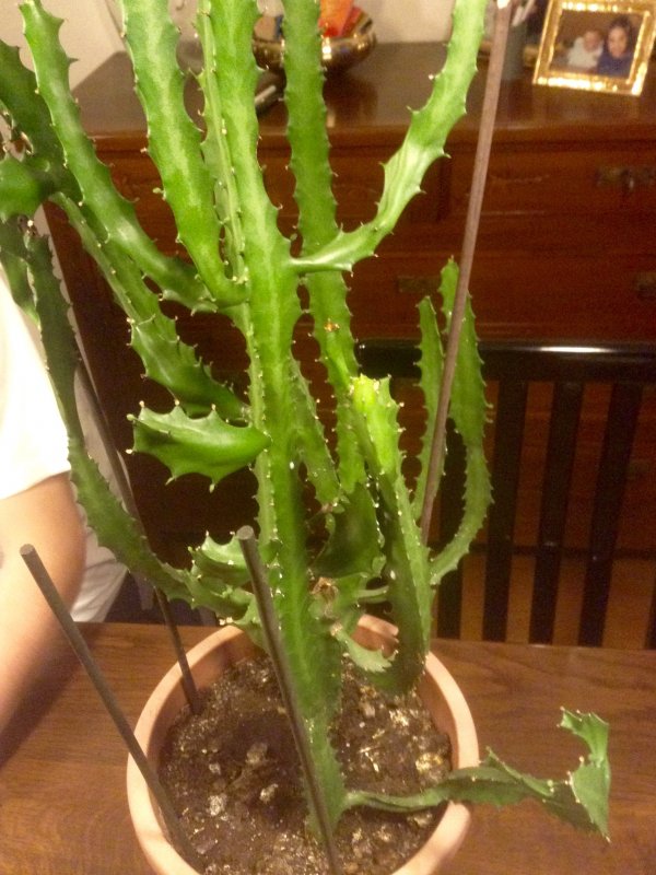 Euphorbia triangularis, per i fiori c'è da aspettare ma sono infiorescenze piccole e gialline. La mia era alta più di 250cm, ma mai fatto uno.