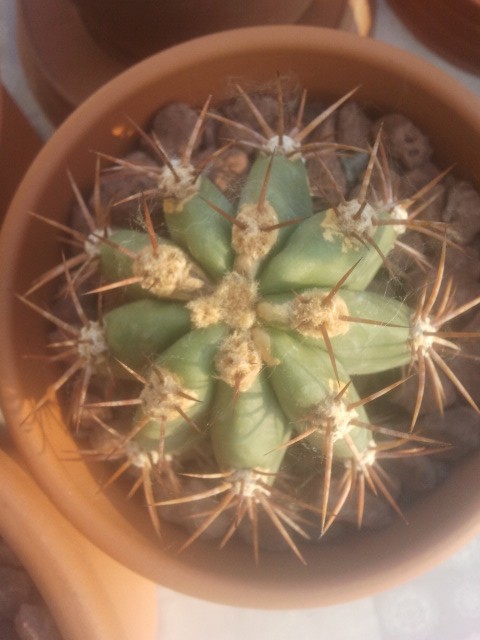 L'ho pensato anch'io, ma il Terscheckii ha le spine gialle (ne ho uno). Questo le ha rosse. Poi la forma è di certo quella del Terscheckii. Ho trovato un certo Trichocereus Wendermanianus, che ci somiglia, ma davvero non so.