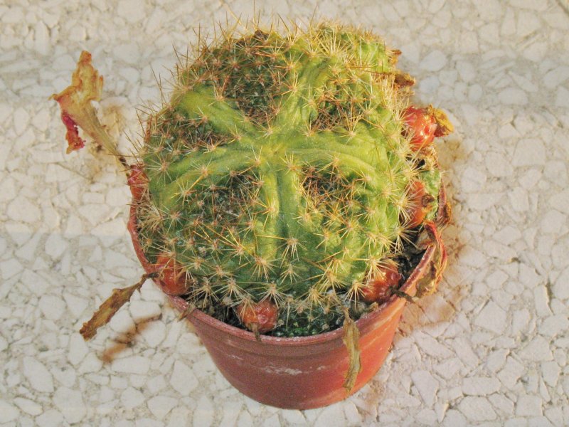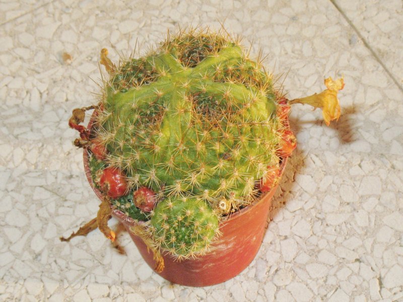 La Rebutia la trovo davvero malandata e strana sia per colore (giallina) che per forma (mai vista con quella sorta di croce sopra..). L'ho presa per cercare di salvarla e perchè carica di frutti (se non riesco con lei almeno tiro avanti la generazione Very Happy )