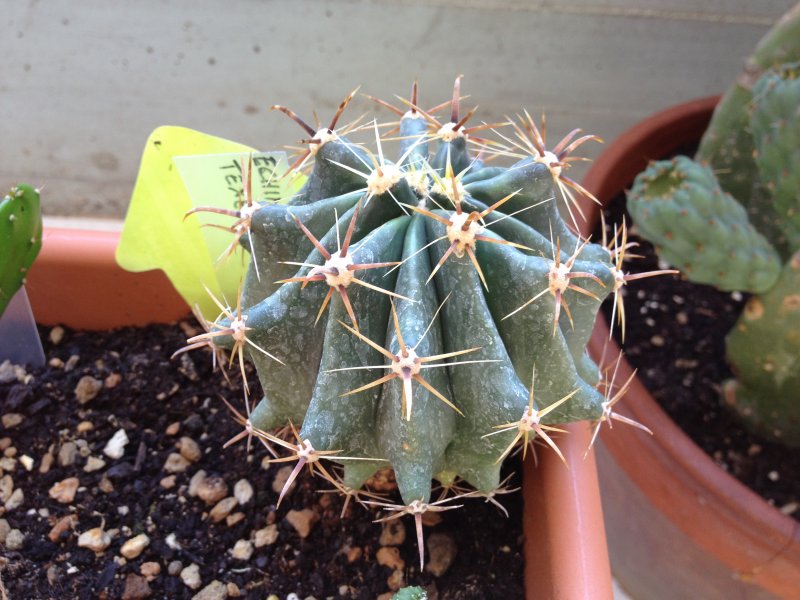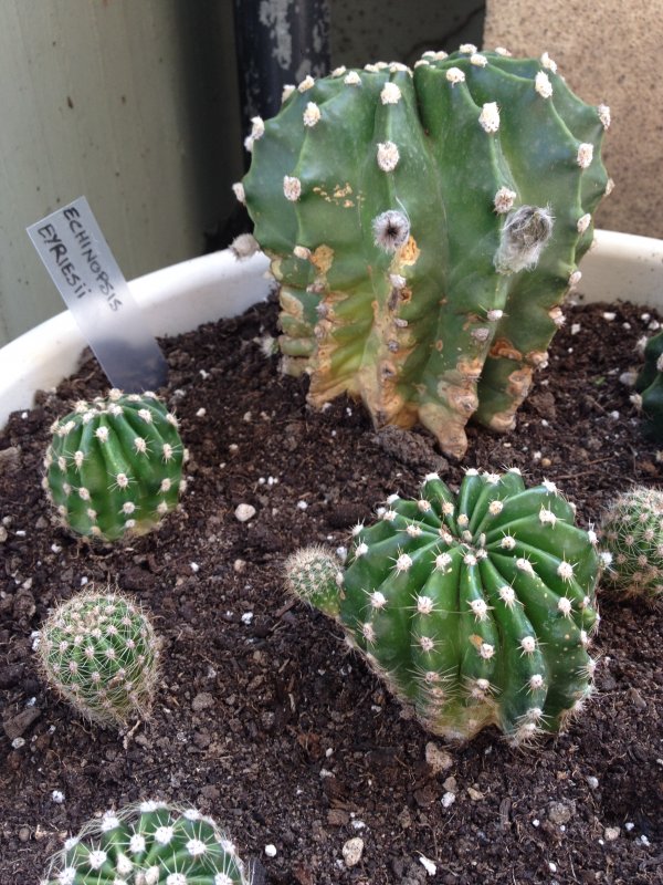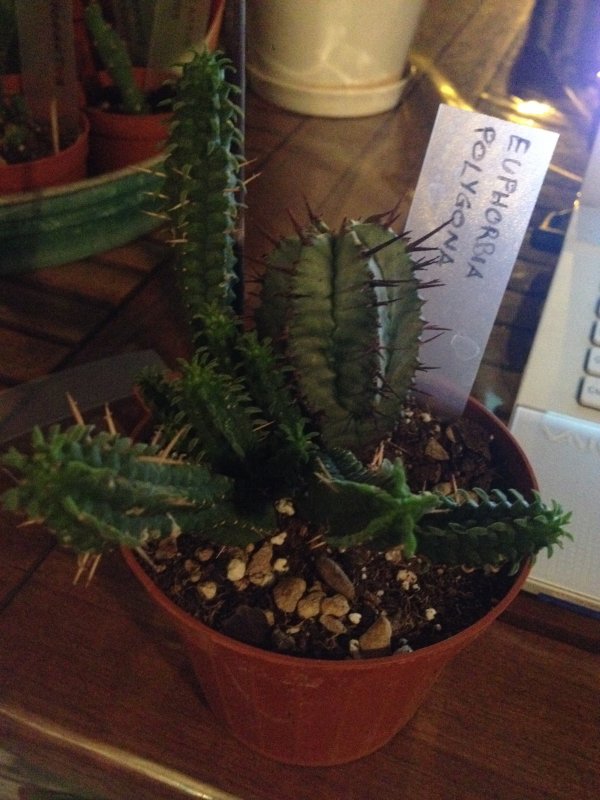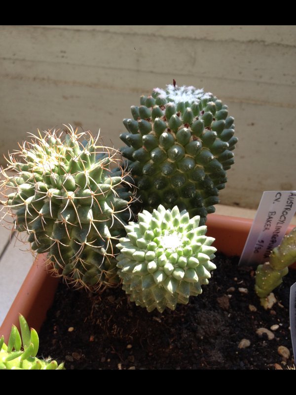 Ciao a tutti, sono nuovo del forum e vi presento le mie piante sperando possiate aiutarmi ad identificarle   1 austrocylindropuntia cv. baker 5/30   2 cereus forbesii f. cristatus?   3 echinocactus grusonii v. setispinus?   4 echinocactus texensis? o ancistrocactus crassihamatus? o ferocactus herrerae cv. brevispinus?   5 echinopsis eyriesii ?   6 echinopsis mirabilis?   7 euphorbia horrida???   8 euphorbia trigona rossa? oppure euphorbia hermentiana rubra?   9 gymnocalcyum damsii   10 lithops geyeri?   11 lobivia silvestrii?   12 mammillaria formosa subs microthele superfina ?? oppure notocactus haselbergii??   13 mammillaria gracilis cv. arizona snow?   14 mammillaria guelzowiana?   15 mammillaria polythele?