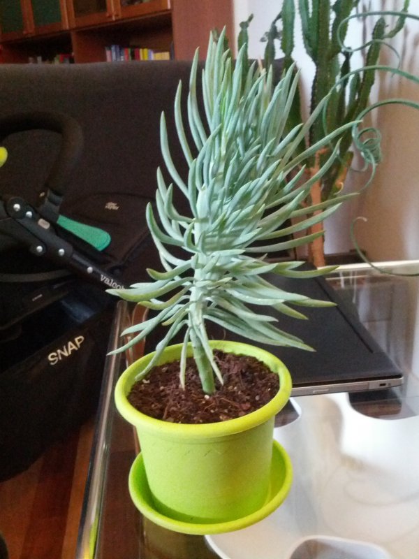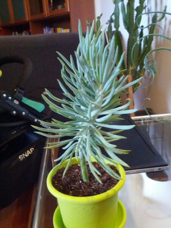 Mi sembra un po' troppo verde, la mia ha le foglie grigie. Pensavo ad un Senecio ficoides o talinoides