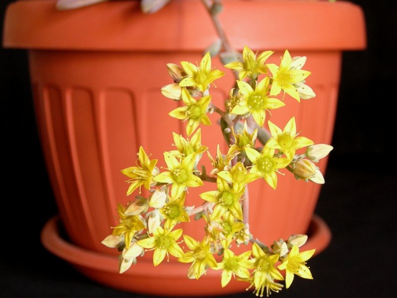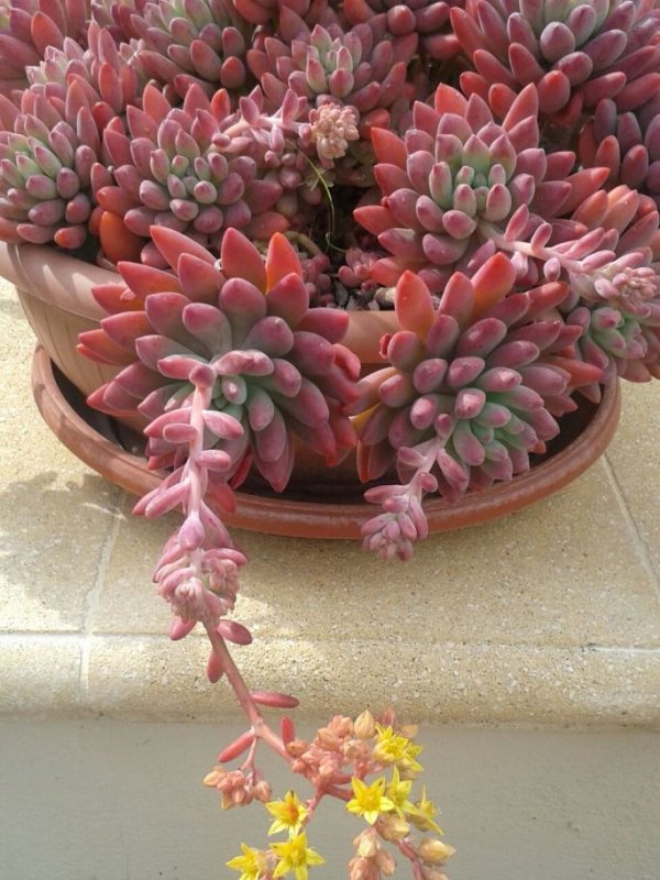 A me non sembra un Sedum pachiphyllum che ha le foglie più tondeggianti rispetto alla tua. poi i fiori dei Sedum si assomigliano tutti, personalmente non riesco a distinguerli tra loro