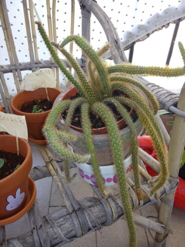 La terza è un aporocactus flagelliformis che deve stare all'aperto e ugualmente non ama tanto sole.