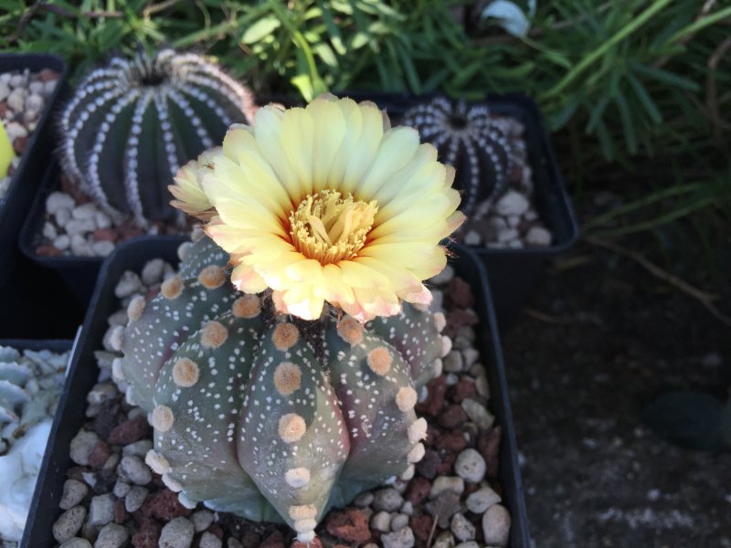 @Giancarlo sai che la Geohintonia è praticamente immobile, le altre due piccole Uebelmannia ci sono vicine mentre quella più grande e' un po' cresciuta.