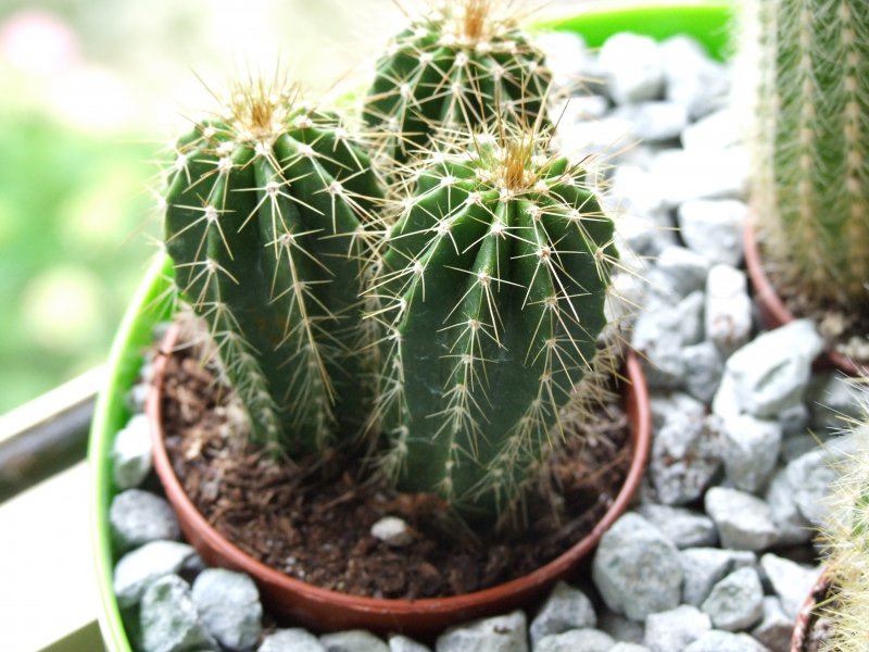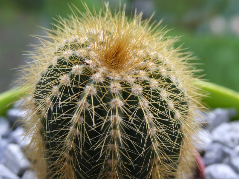 E' temporaneamente in una ciotola di plastica riempita di pezzetti di marmo decorativo (in compagnia di altri tre cactus finchè non trovo un vaso giusto per fare una mini-composizione).