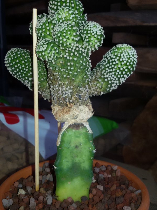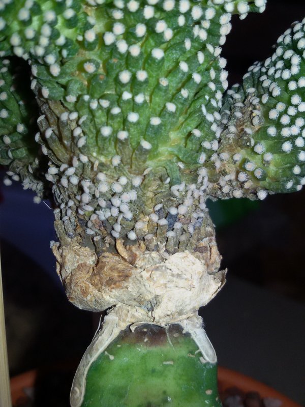 Se hai paura che l'innesto sia compromesso puoi provare a tagliare i due rami laterali e vedere se radicano quelli. Io ho comprato qualche volta piante dalla Thailandia, piante che altrimenti sono difficili da trovare, ma non piante delicate, perche' ci vogliono 2-3 settimane di viaggio per farle arrivare, e ogni volta devono essere messe a radicare. Ad es. non comprerei mai Pseudolithos o Whitesloanea, che pure si trovano spesso a prezzi bassi da venditori Thai.