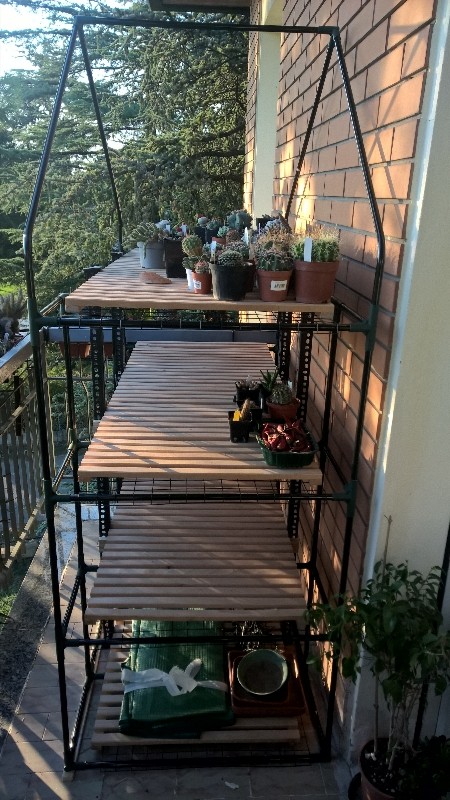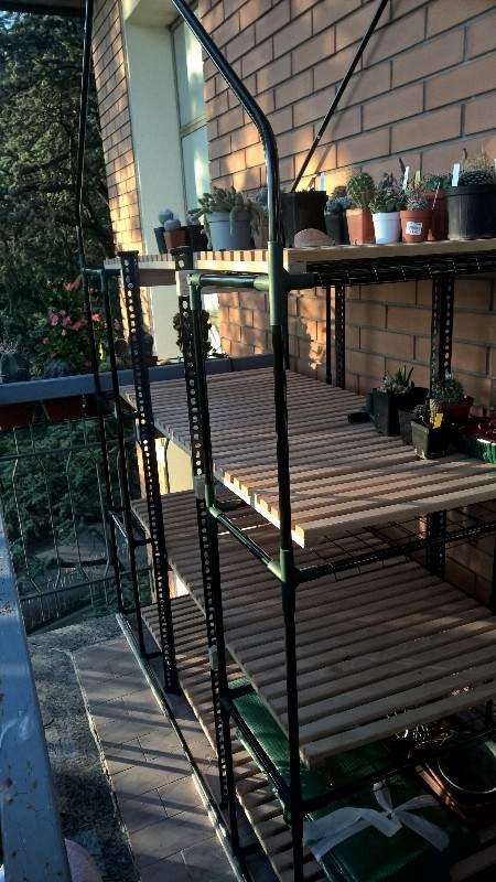 Ottimo lavoro come dice Serena, i supporti in legno sono belli e robusti, però non credo che tu possa lasciare tutto chiuso d'inverno, se ci batte il sole, ho paura che le ventole non siano sufficienti.