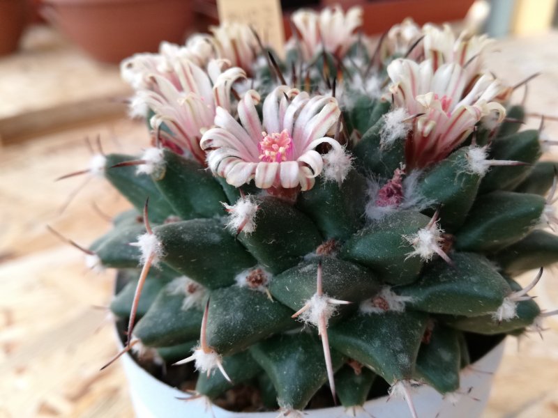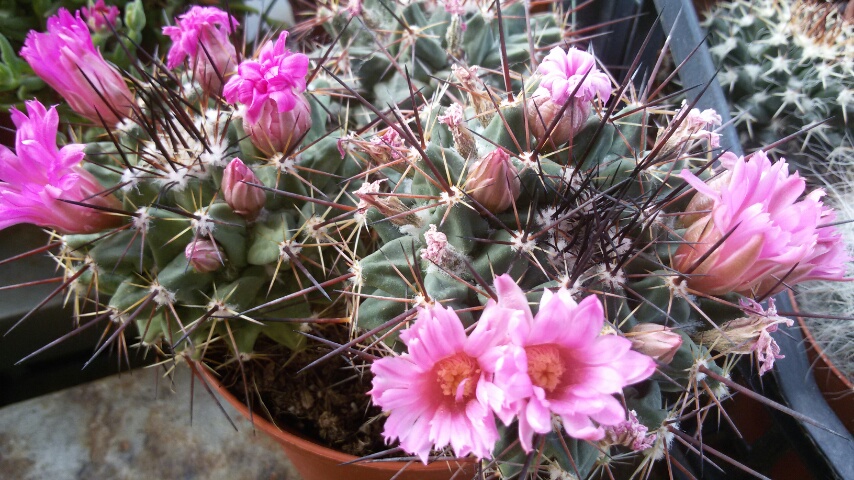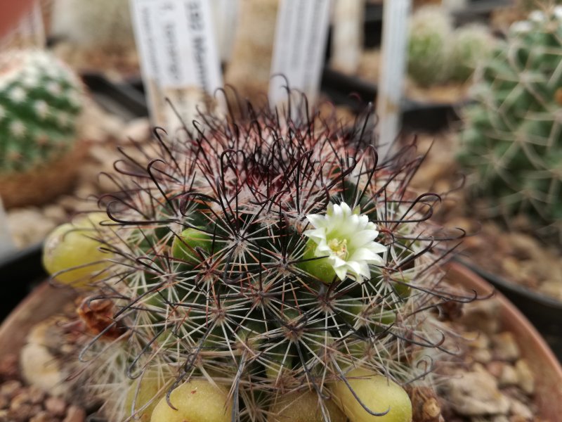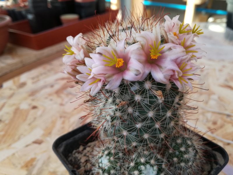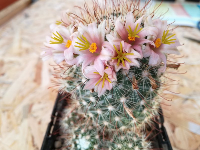 Ho un paio di mammillarie del capo che attendono i natali, di cui solo una è in fioritura, pertanto la seconda la posterò appena fiorisce.